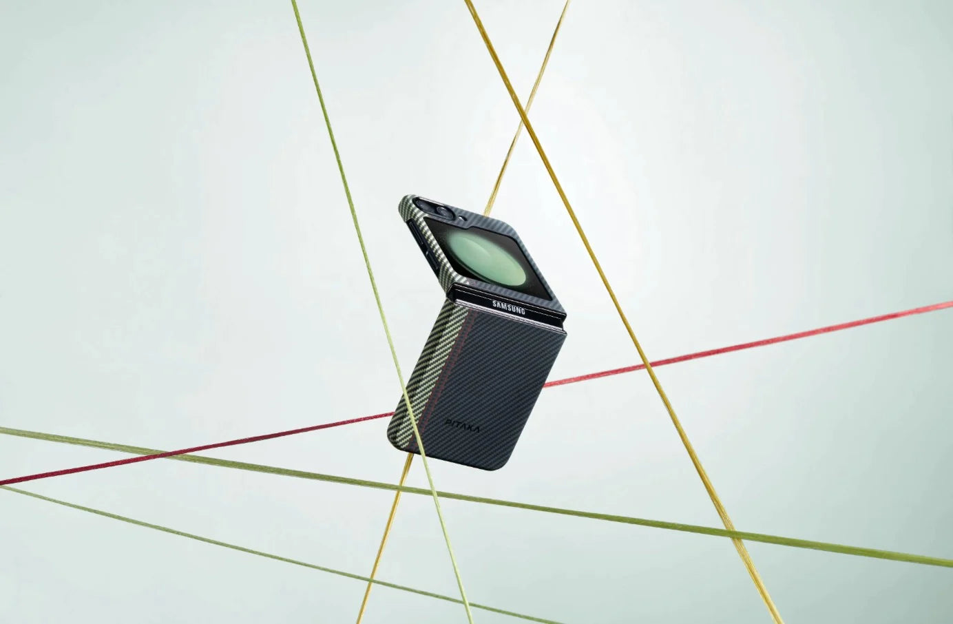 Una funda Galaxy Z Flip5 MagSafe ultrafina fabricada con fibra de aramida de calidad aeroespacial.